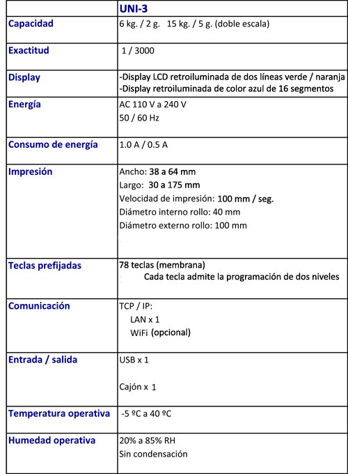 La UNI-3 permite crear etiquetas que captan la atención del consumidor. - Soporta etiquetas de hasta 175 mm de largo. - Permite múltiples logos por cada PLU. - Varios tamaños de caractéres pueden ser libremente inclinados, subrayados o puestos en reversa y negrita.