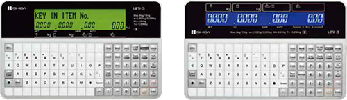 Las variantes de modelos UNI-3 están disponibles con dos tipos de pantalla: - Los modelos UNI-3 L1, tienen una pantalla retroiluminada de color azul con display de 16 segmentos blanco fuerte capaz de mostrar momentáneamente el nombre del PLU y de intercambio de datos numéricos. - Los modelos UNI-3 L2, vienen con una pantalla LCD retroiluminada de dos líneas verde / naranja, una línea matriz de puntos alfanumérica y sólo una línea numérica.