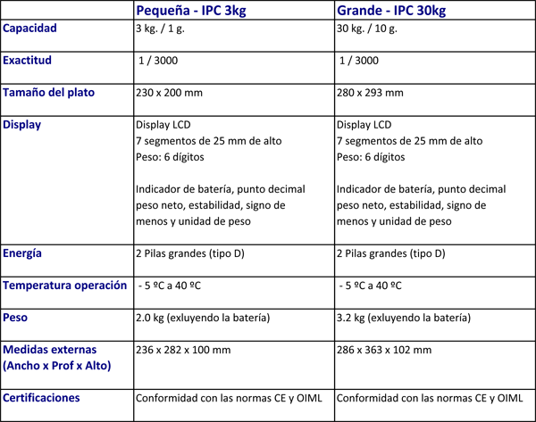 La IPC es una balanza portátil con un diseño compacto. Permite a los usuarios medir pesos de productos en un rango de 1 g a 30 kg.